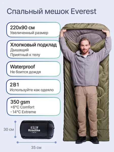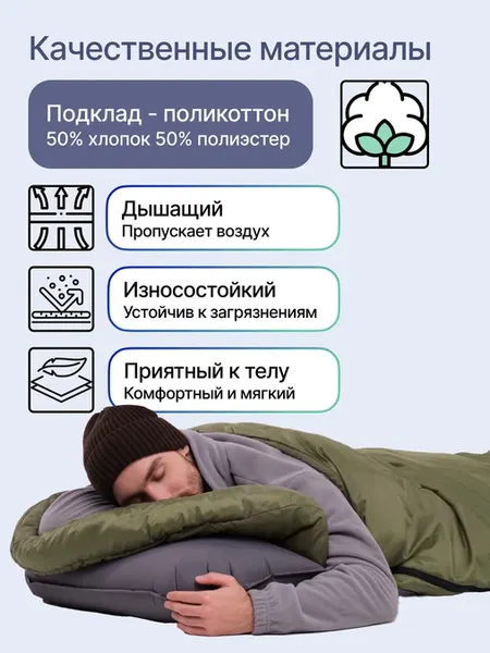 Коротко о главном: Это кемпинговый спальник-одеяло, рассчитанный на весенне-осенние выезды на природу. Он подойдет тем, кто не гонится за экстремальными температурами, а ценит комфорт и простор. Главная фишка – сочетание хлопковой внутренней ткани и большого размера, что делает сон в нем максимально приятным.