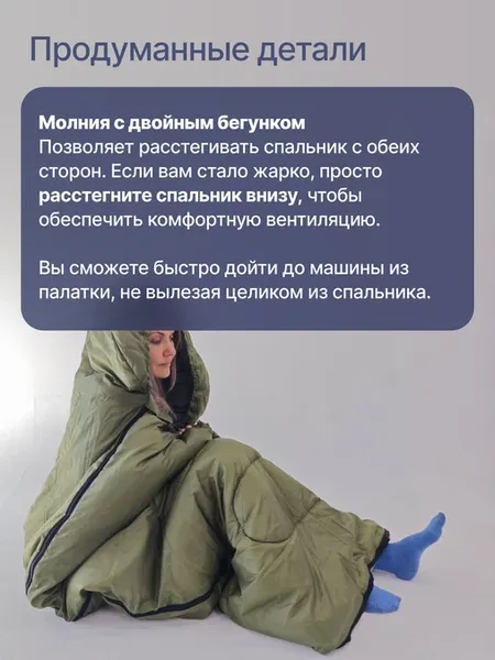 Итог: Этот спальник – отличный выбор для тех, кто ищет комфортный и просторный вариант для не слишком холодных кемпинговых выездов и готов немного больше внимания уделить уходу за хлопковой подкладкой.