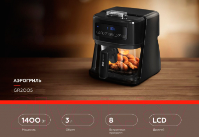 • Дополнительные функции: Таймер, регулировка температуры, самоочистка — всё это делает использование аэрогриля еще удобнее.