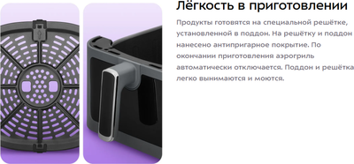 • Компактность: Аэрогриль занимает мало места на кухне, что делает его отличным выбором даже для небольших помещений.