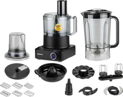 • Многофункциональность: один прибор заменяет сразу несколько кухонных устройств, таких как блендер, миксер, терка и мясорубка.