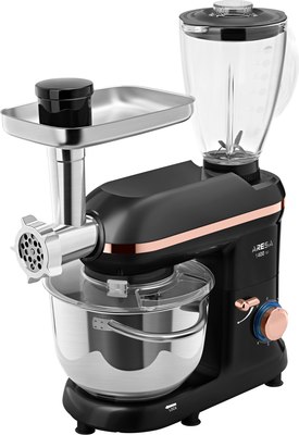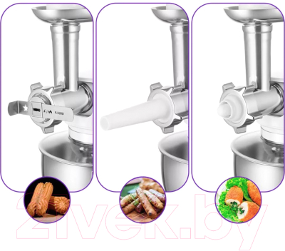 - Многофункциональность: один прибор заменяет сразу несколько кухонных устройств, таких как блендер, миксер, терка и мясорубка.