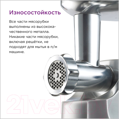 • Разнообразие насадок: для приготовления фарша, колбас, кеббе, терки и шинковки.