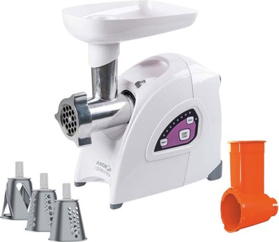 Мощность: 500 Вт; Мощность при блокировке вала: 210 Вт; Производительность: 3.5 кг/мин; Реверс: есть ; Материал корпуса: пластик ; Материал шнека: металл ;