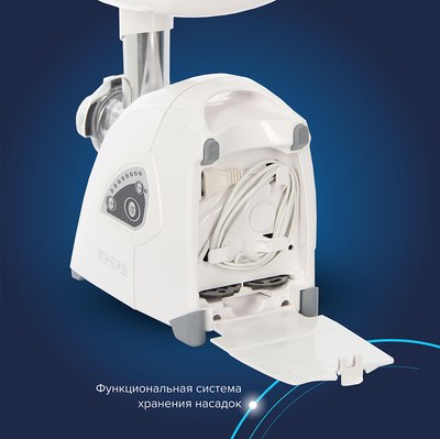 • Дополнительные функции: реверс, насадки для колбас, терки и шинковки.