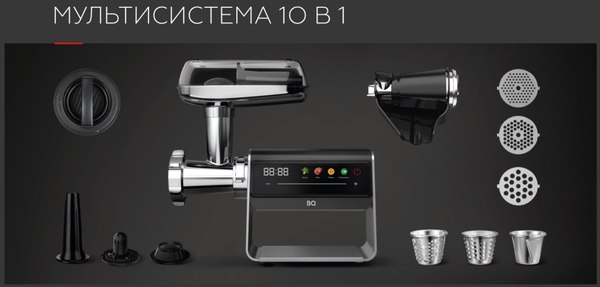 • Разнообразие насадок: для приготовления фарша, колбас, кеббе, терки и шинковки.