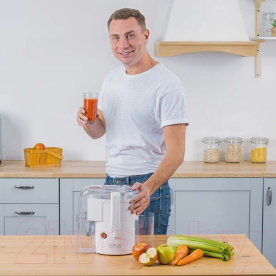 - Многофункциональность: можно выжимать соки не только из фруктов, но и из овощей, ягод, зелени.