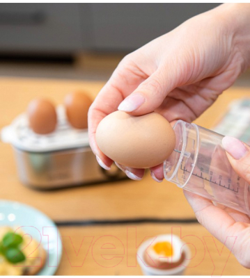 - Экономия времени: устройство автоматически выключается, как только яйца достигают нужной степени готовности, поэтому вам не нужно следить за временем и переживать, что яйца переварятся.