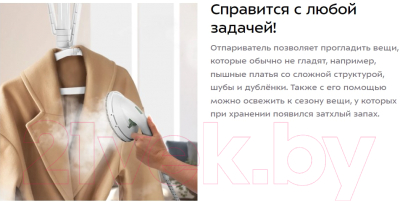 • Устранение запахов: Горячий пар нейтрализует неприятные запахи и освежает одежду.