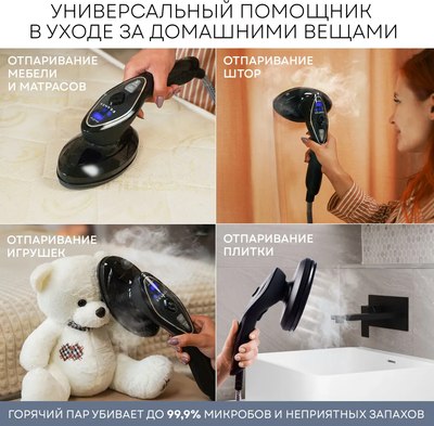 • Устранение запахов: Горячий пар нейтрализует неприятные запахи и освежает одежду.