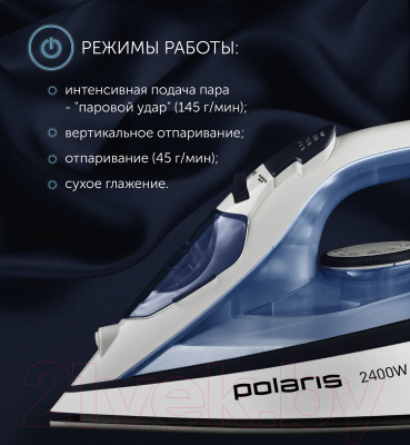 • Функция подачи пара: Удобна для разглаживания плотных и деликатных тканей.