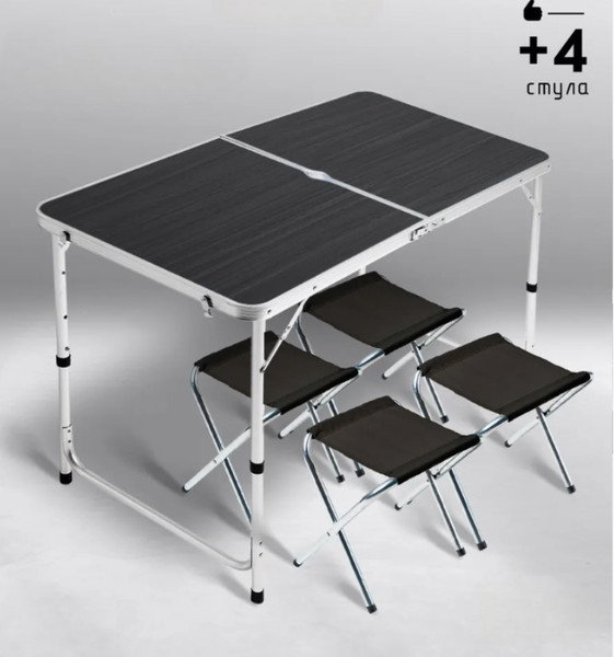 Коротко о главном: Это отличный складной комплект стола с табуретами для пикников, дачи или выездов на природу. Главное преимущество – компактность в сложенном виде и возможность быстро организовать комфортное место для 4 человек.