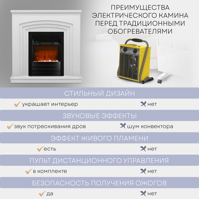 - Электрические камины: безопасные и удобные устройства, которые работают от сети и создают эффект живого пламени. Подходят для квартир.