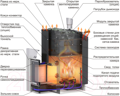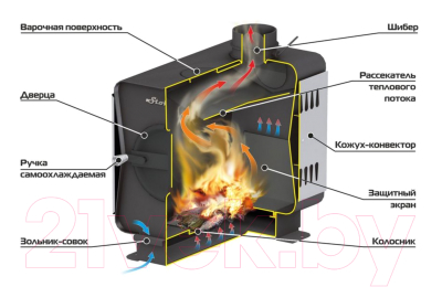 - Регулярно очищайте дымоход и топку (для дровяных моделей).