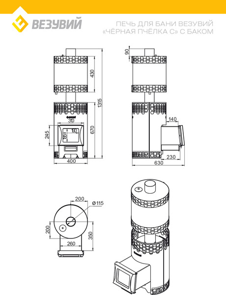 | Особенности конструкции | зольный ящик, выносная топка, бак для воды |