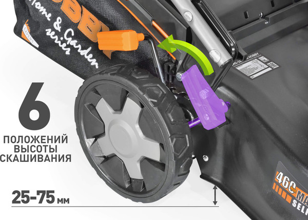 Коротко о главном: Это бензиновая самоходная газонокосилка с функцией мульчирования. Отличный вариант для тех, у кого участок среднего размера с неровным рельефом и кто хочет тратить меньше сил на стрижку, а заодно и удобрять газон измельченной травой.