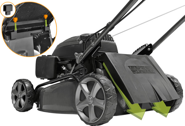 Коротко о главном: Это бензиновая газонокосилка с травосборником и функцией мульчирования. Идеальный вариант для тех, у кого участок среднего размера и кто хочет получить ухоженный газон без лишних усилий. Мульчирование позволит сэкономить на удобрениях, возвращая скошенную траву в почву.